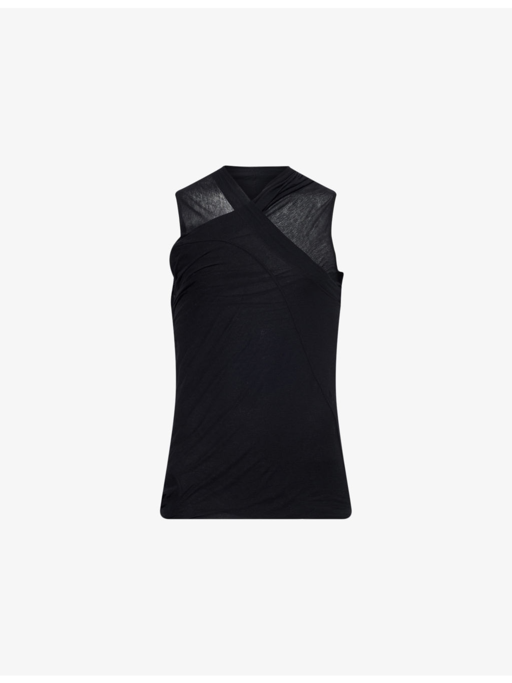 PRODUCT DETAILS - Rick Owens cotton top - 100% cotton - Slips on - Slim fit, tubular design, self-wrap around, multiple hole openings, semi-sheer, raw edges - Hand wash cold - Made in Italy - Size medium: length 65in / 166cm - Model is 6ft 2in/1.88m and wears a size medium - Lightweight, stretchy Ref: R04446772