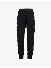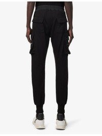 PRODUCT DETAILS - Rick Owens cotton-jersey trousers - 100% cotton; contrast 97% cotton, 3% elastane - Pulls on - Regular fit, high-rise, tapered leg, drawstring elasticated waistband, concealed button fastening at front, two welt pockets and two zip pockets at front, two buttoned pockets at front and back, ribbed cuffs - Hand wash cold - Made in Italy - Size UK 34: rise 13in / 34cm, inside leg 29in / 74cm, leg opening 8in / 20cm - Model is 6ft 2in/1.88m and wears a size UK 34 - Midweight, stretchy Ref: R04418183