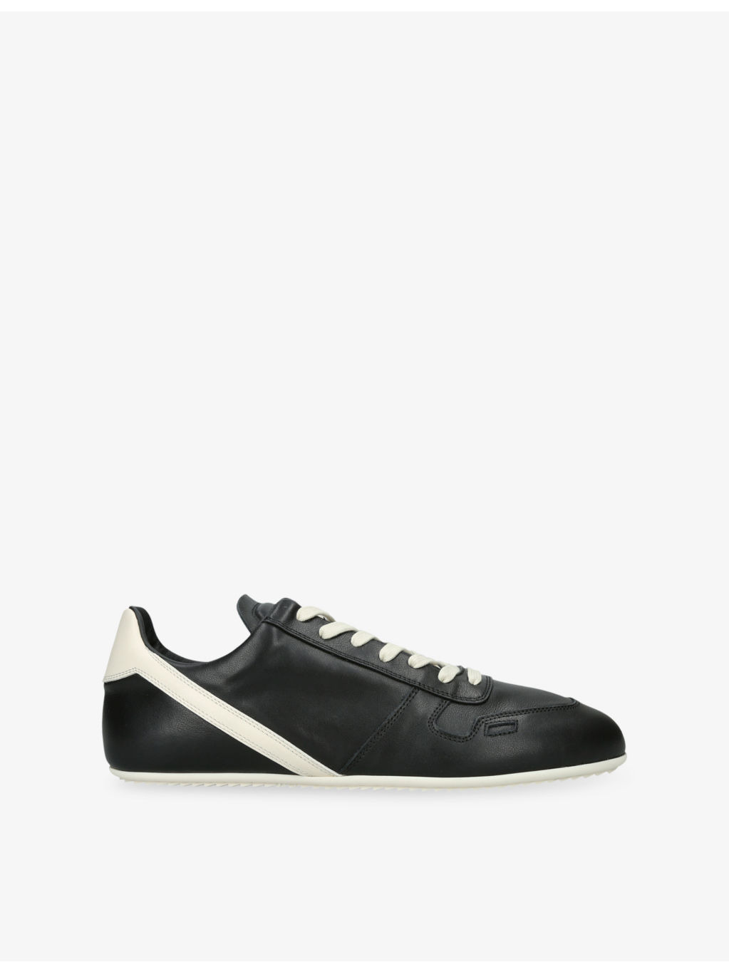 PRODUCT DETAILS - Prada leather trainers - 100% leather - Lace-up fastening - Low top, closed round toe, flat sole, contrast panels and sole - Upper: 100% leather - Lining: 100% fabric - Sole: 100% rubber - Please note, we are unable to accept in-store returns on Prada orders Ref: R04505451