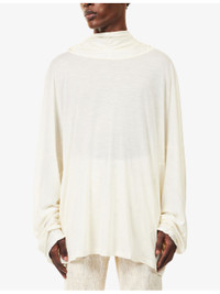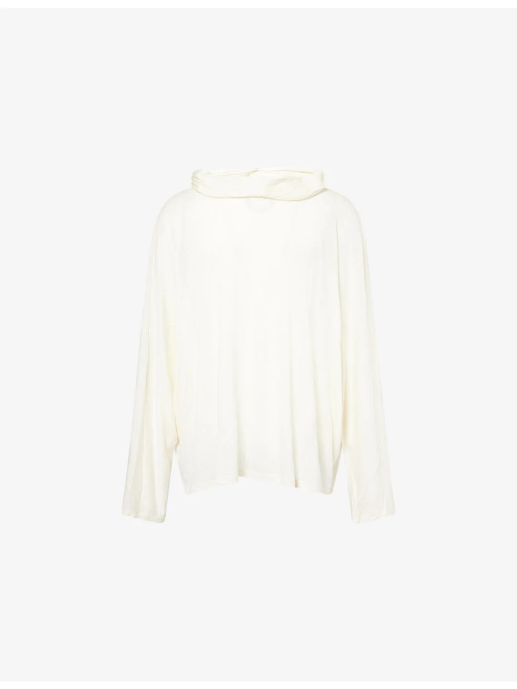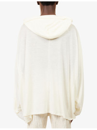 PRODUCT DETAILS - Rick Owens wool-silk top - 70% wool, 30% silk - Oversized fit, hood, long sleeves - Hand wash cold - Made in Italy - Model is 6ft 2in / 1.88m and wears one size - Lightweight, slight stretch Ref: R04514150