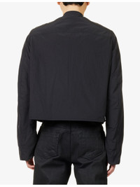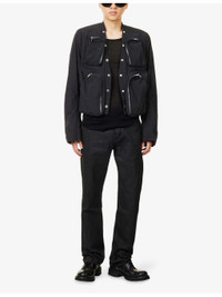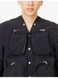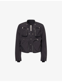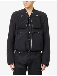 PRODUCT DETAILS - Rick Owens shell jacket - 100% polyamide - Pressed stud fastening at front - V-neck opening, long sleeves, ribbed cuffs, four zipped patch pockets at front, two slip pockets at front, fully lined - Dry clean - Made in Italy - Size UK 40: length 24.4in / 62cm, chest 40.1in / 102cm - Model is 6ft 2in/1.88m and wears a size UK 40 - Lightweight, non-stretch Ref: R04490460