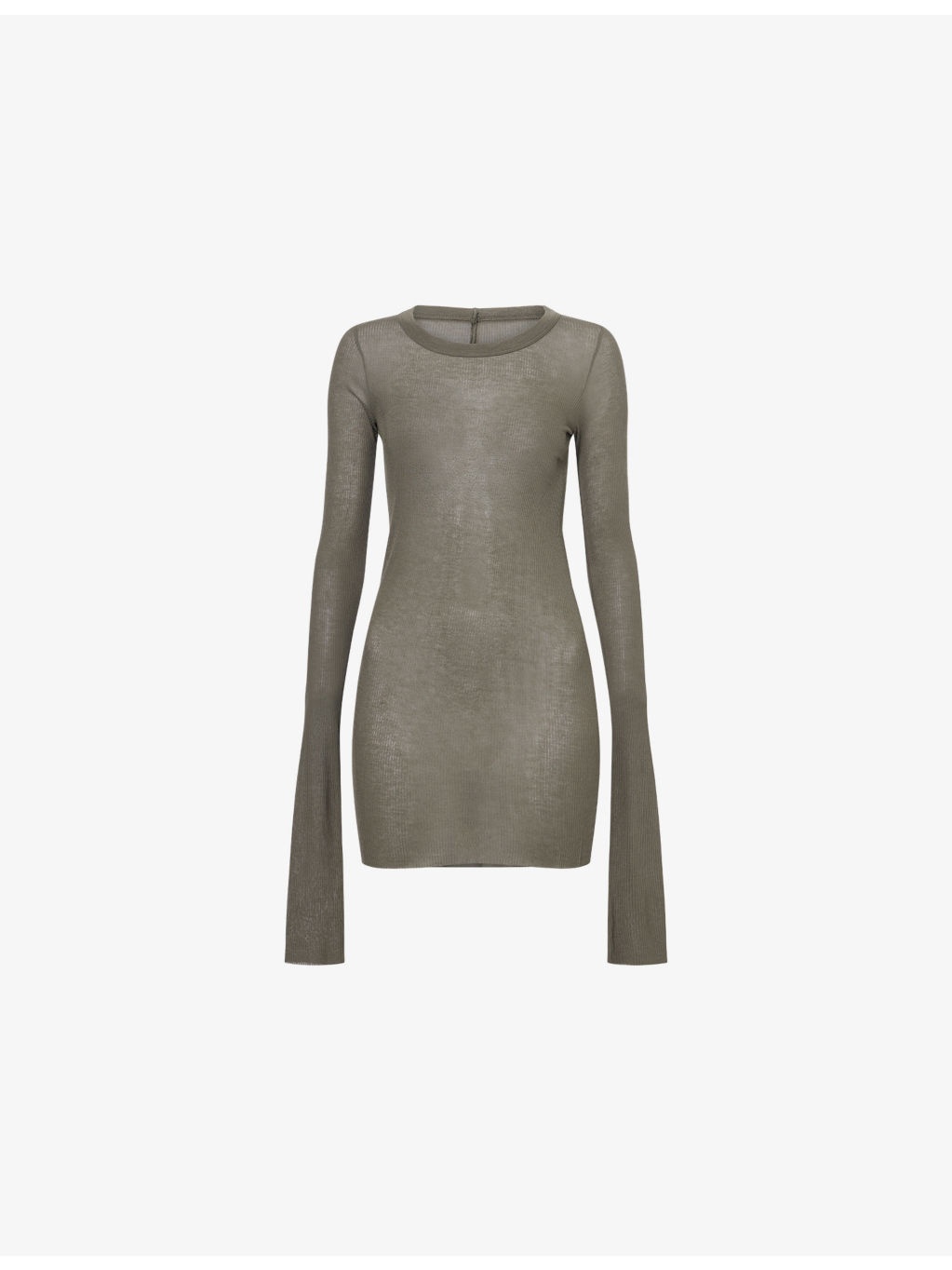 PRODUCT DETAILS - Rick Owens woven top - 88% viscose, 12% silk - Slim fit, round-neck, long sleeves, all-over ribbed, raw trims - Hand wash cold - Made in Italy - True to size - Model is 5ft 10in/1.78m and wears a size UK 8 - Lightweight, stretchy Ref: R04495602