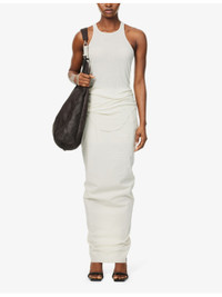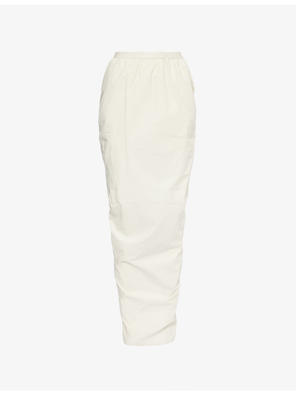 PRODUCT DETAILS - Rick Owens cotton maxi skirt - 100% cotton - Slips on - Slim fit, mid-waist, elasticated waist, two slip pockets at front, slit at back - Specialist dry clean - Made in Italy - Size UK 6: length 44in / 112cm - Model is 5ft 10in/1.78m and wears a size UK 6 - Lightweight, non-stretch Ref: R04417989