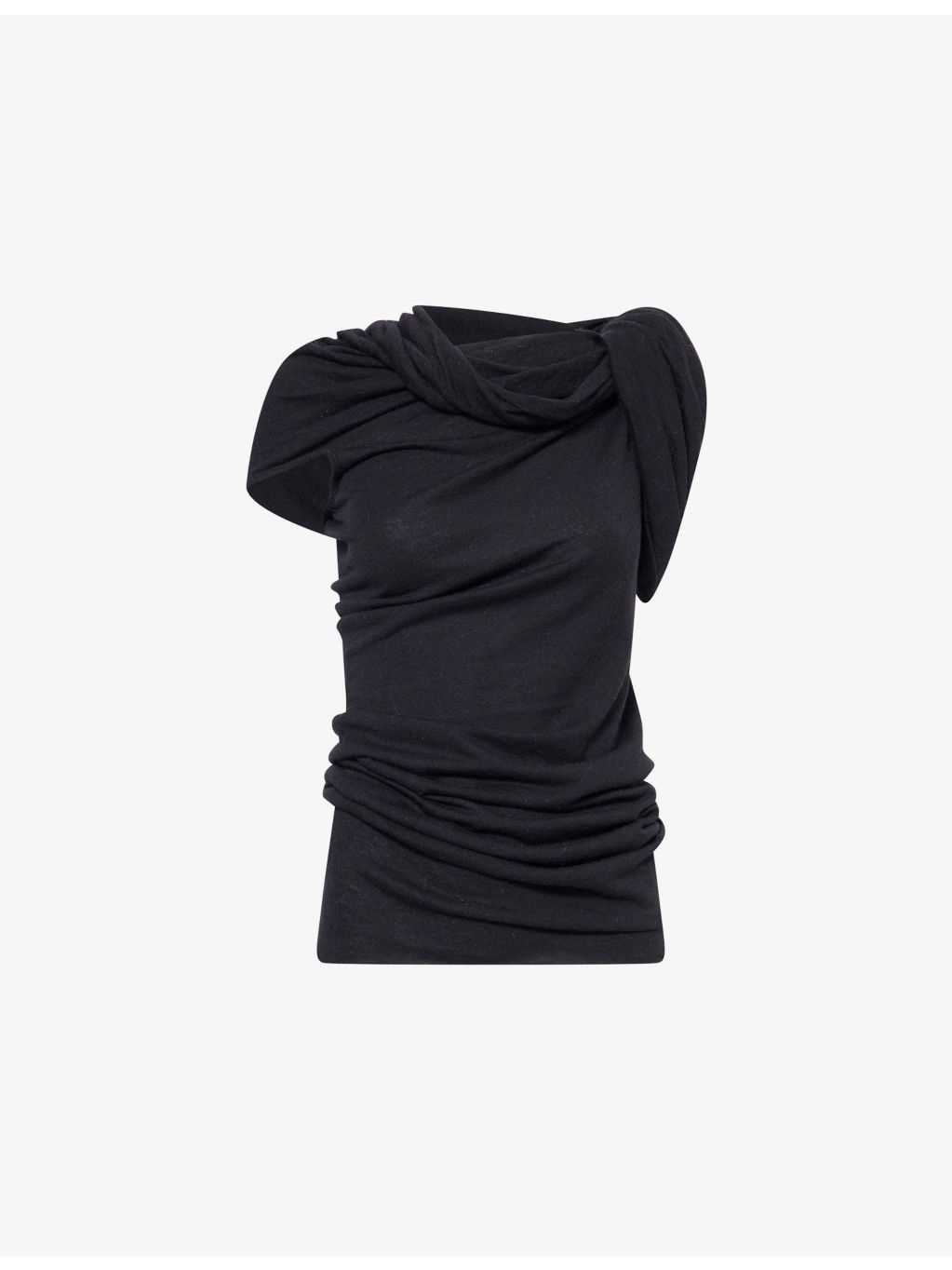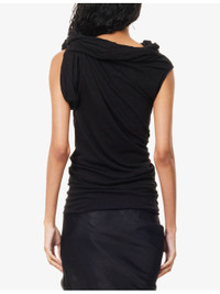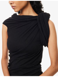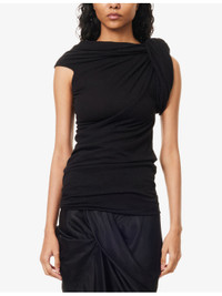PRODUCT DETAILS - Rick Owens stretch-woven top - 68% viscose, 32% polyester - Slim fit, high neck, sleeveless, asymmetric knot detail - Machine wash cold - Made in Italy - True to size - Lightweight, stretchy Ref: R04495598