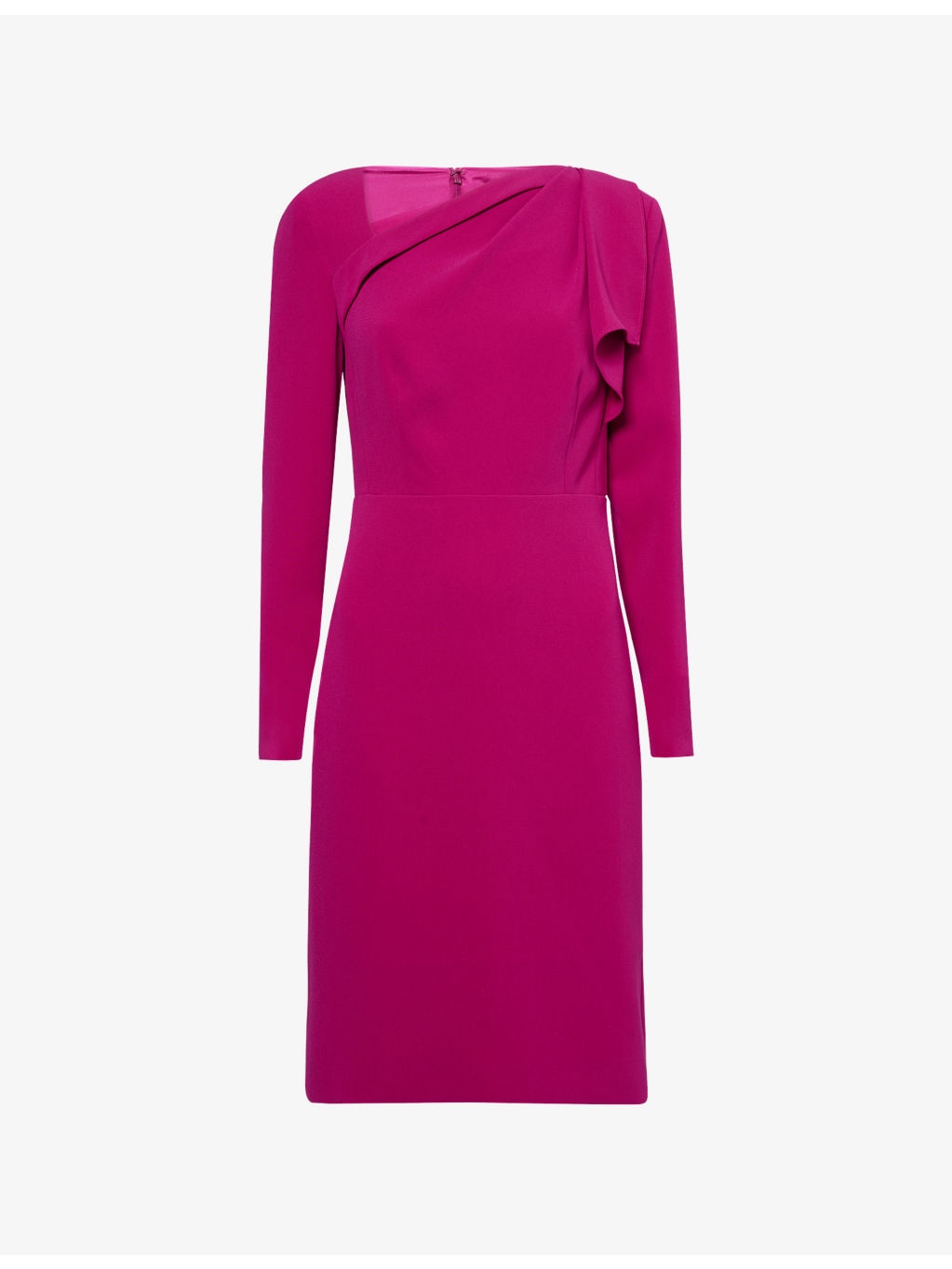 PRODUCT DETAILS - Roland Mouret woven midi dress - 71% acetate, 29% polyester; lining 100% polyester - Concealed zip fastening at back - Regular fit, asymmetric neckline, detachable padded shoulders, long sleeves, zipped cuffs, drape embellishment at front, darts at front and back, fully lined - Dry clean - True to size - Size UK 8: length 37in / 95cm - Model is 5ft 10in/1.78m and wears a size UK 8 - Lightweight, stretchy Ref: R04485555