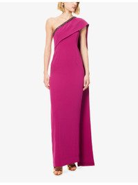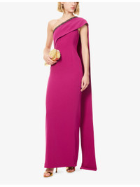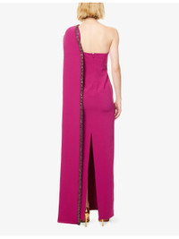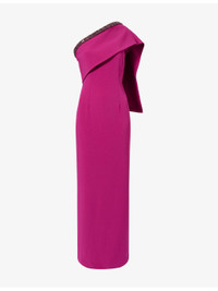 PRODUCT DETAILS - Roland Mouret woven gown - 75% acetate, 25% polyester - Regular fit, asymmetric neckline, sleeveless, embellished sash panel, split hem, lined - Dry clean - True to size - Size UK 8: length 55in / 140cm - Model is 5ft 10in/1.78m and wears a size UK 8 - Midweight, non-stretch Ref: R04485559