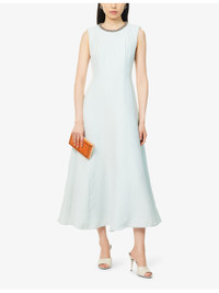 Rhinestone-Embellished Sleeveless Wool And Silk Midi Dress