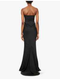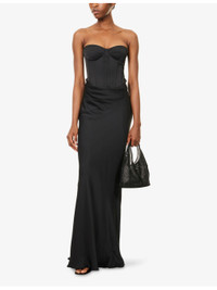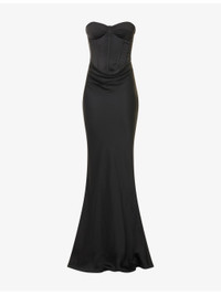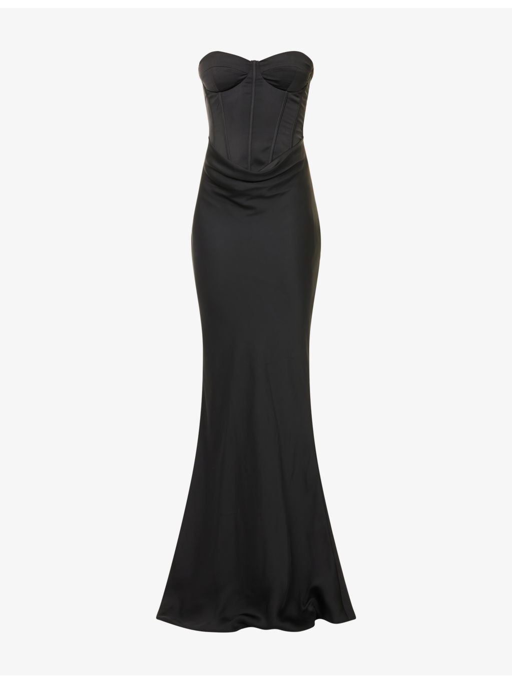 PRODUCT DETAILS - ROTATE Birger Christensen satin gown - 100% polyester; lining 100% polyester - Concealed zip fastening at back - Slim fit, sweetheart neckline, strapless, padded cups, corset bodice, draped design, fluid skirt, floor-length, lined - Dry clean - True to size - Size UK 8: length 57.5in / 146cm - Model is 5ft 10in/1.78m and wears a size UK 8 - Lightweight, non-stretch Ref: R04483742