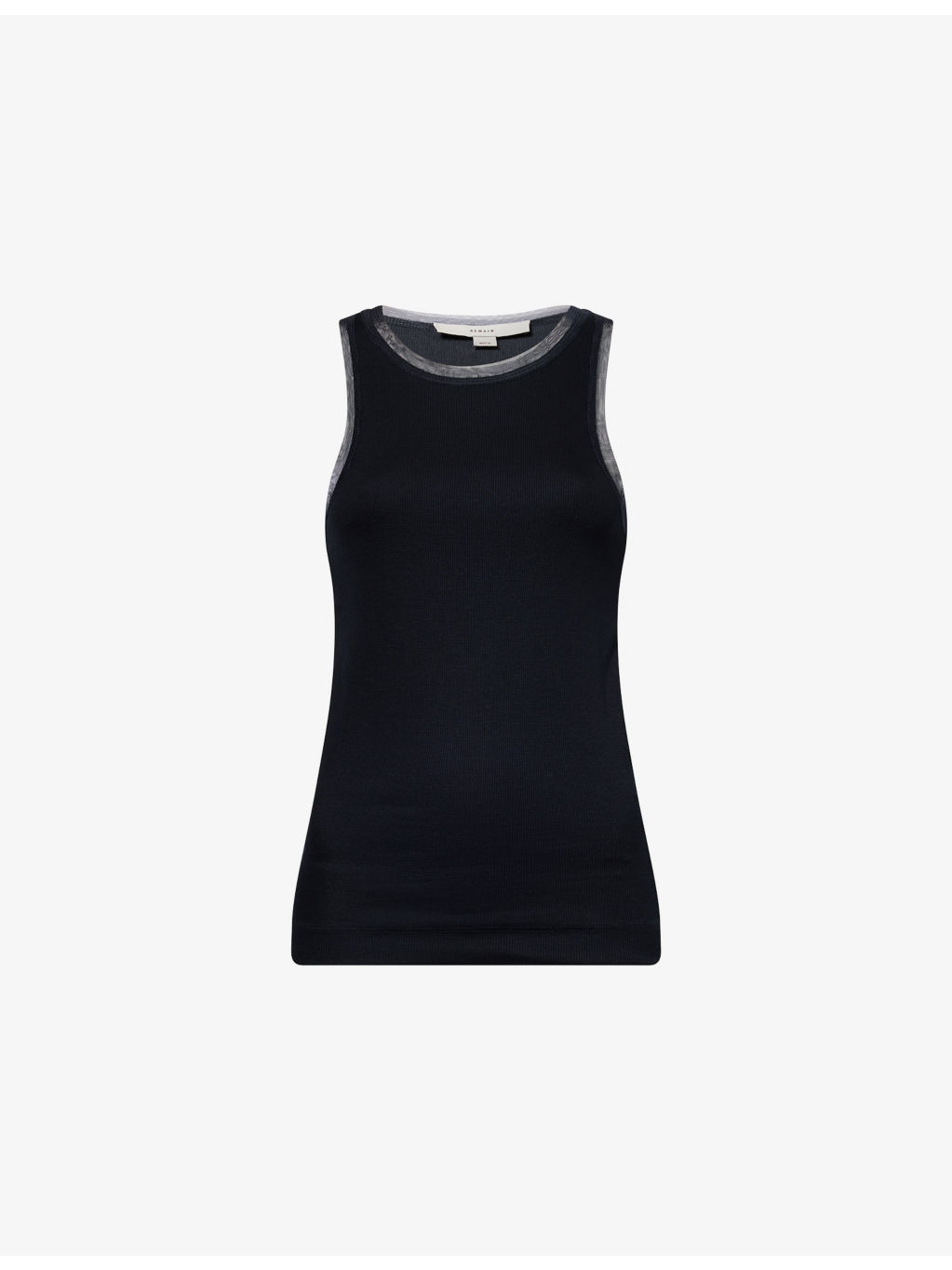 PRODUCT DETAILS - REMAIN Birger Christensen stretch-woven top - 96% viscose, 4% elastane - Slim fit, scoop neck, sleeveless, all-over ribbed, mesh trims - Machine wash at 30°C - Made in Turkey - True to size - Model is 5ft 10in/1.78m and wears a size small - Lightweight, stretchy Ref: R04483760