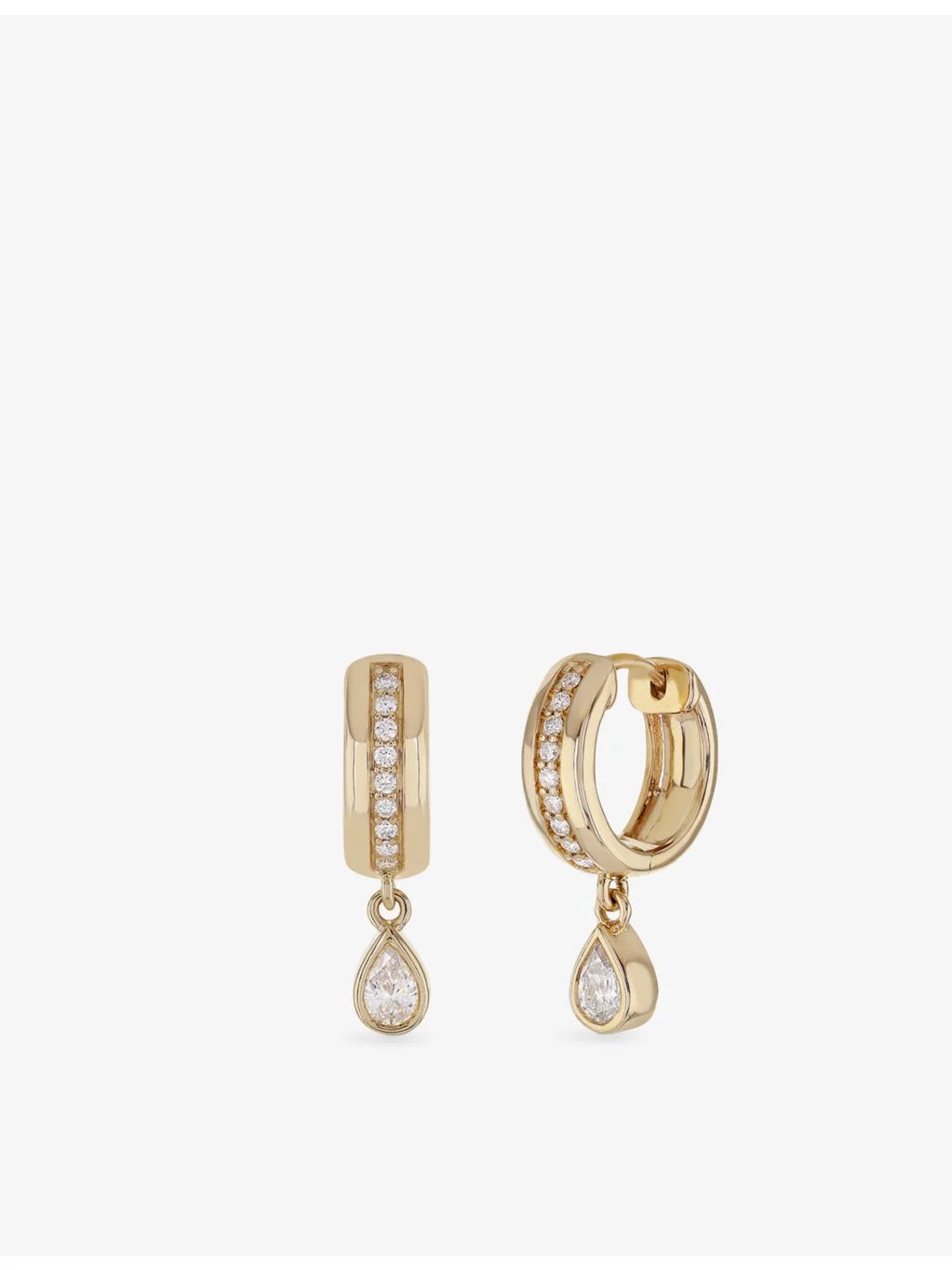 PRODUCT DETAILS - Roxanne First 14ct Yellow Gold And 0.55ct Diamond Drop Hoop Earrings - 100% 14ct yellow gold - Diamonds - Latch-back fastening - Chunky hoop silhouette, single set with diamonds, hanging pear cut charm set with diamond, polished finish - Hoop dimensions: 12mm x 4.5mm x 12mm - Total earring height: 19.5mm - Carat weight: 0.55ct - Carat clarity: SI - Carat colour: H - Please use a soft, dry polishing cloth - We regret that for hygiene reasons, earrings cannot be exchanged or refunded, unless faulty. Ref: R04515181