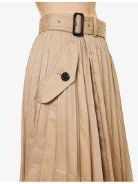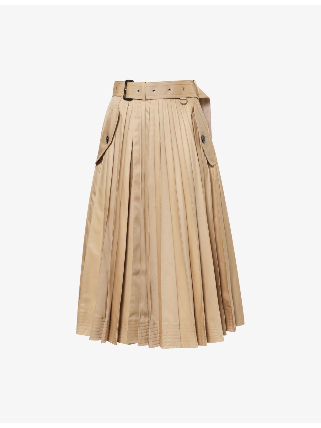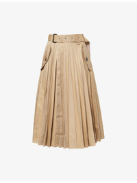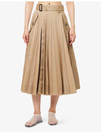 PRODUCT DETAILS - Sacai cotton-blend midi skirt - 63% cotton, 37% polyester - Concealed button fastenings at front - Regular fit, wrap front, belt loops, adjustable belt, two buttoned pockets at front, all-over pleated, flared hem - Dry clean - Made in Japan - True to size - Size small: length 32in / 83cm - Model is 5ft 10in/1.78m and wears a size small - Lightweight, non-stretch Ref: R04488240