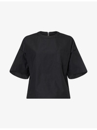 PRODUCT DETAILS - Sacai woven T-shirt - 65% polyester, 35% cotton - Zip fastening - Relaxed boxy fit, round neck, short sleeves, patch pocket at chest, cropped length, exposed branded zip at back - Machine wash cold - Made in Japan - True to size - Model is 5ft 10in/1.78m and wears a size small - Lightweight, non-stretch Ref: R04567728
