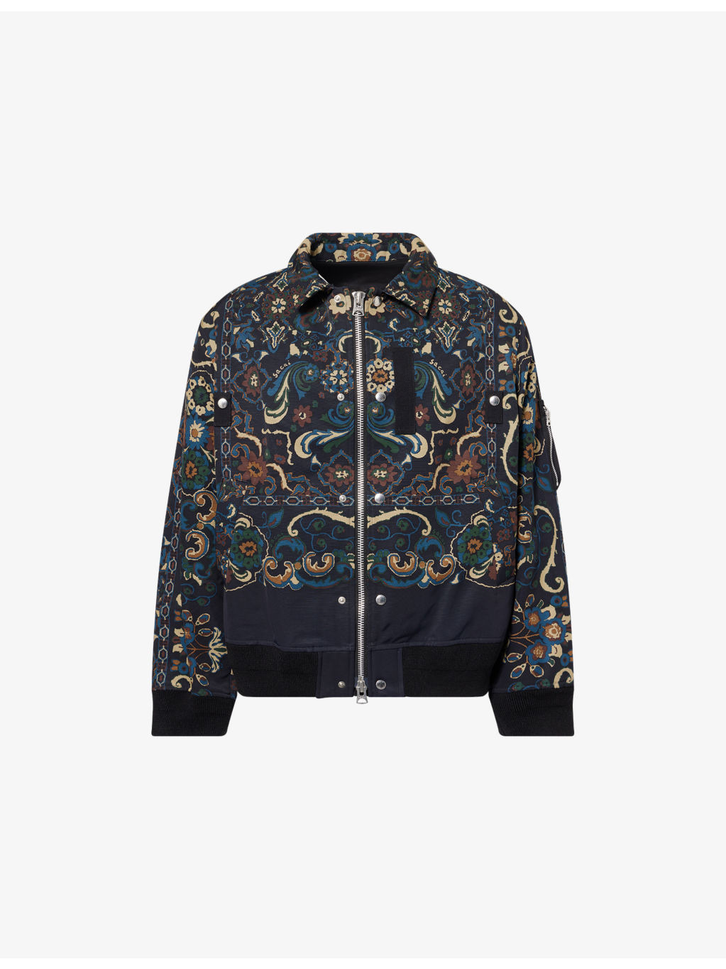 Floral-Print Cotton-Blend Bomber Jacket Navy