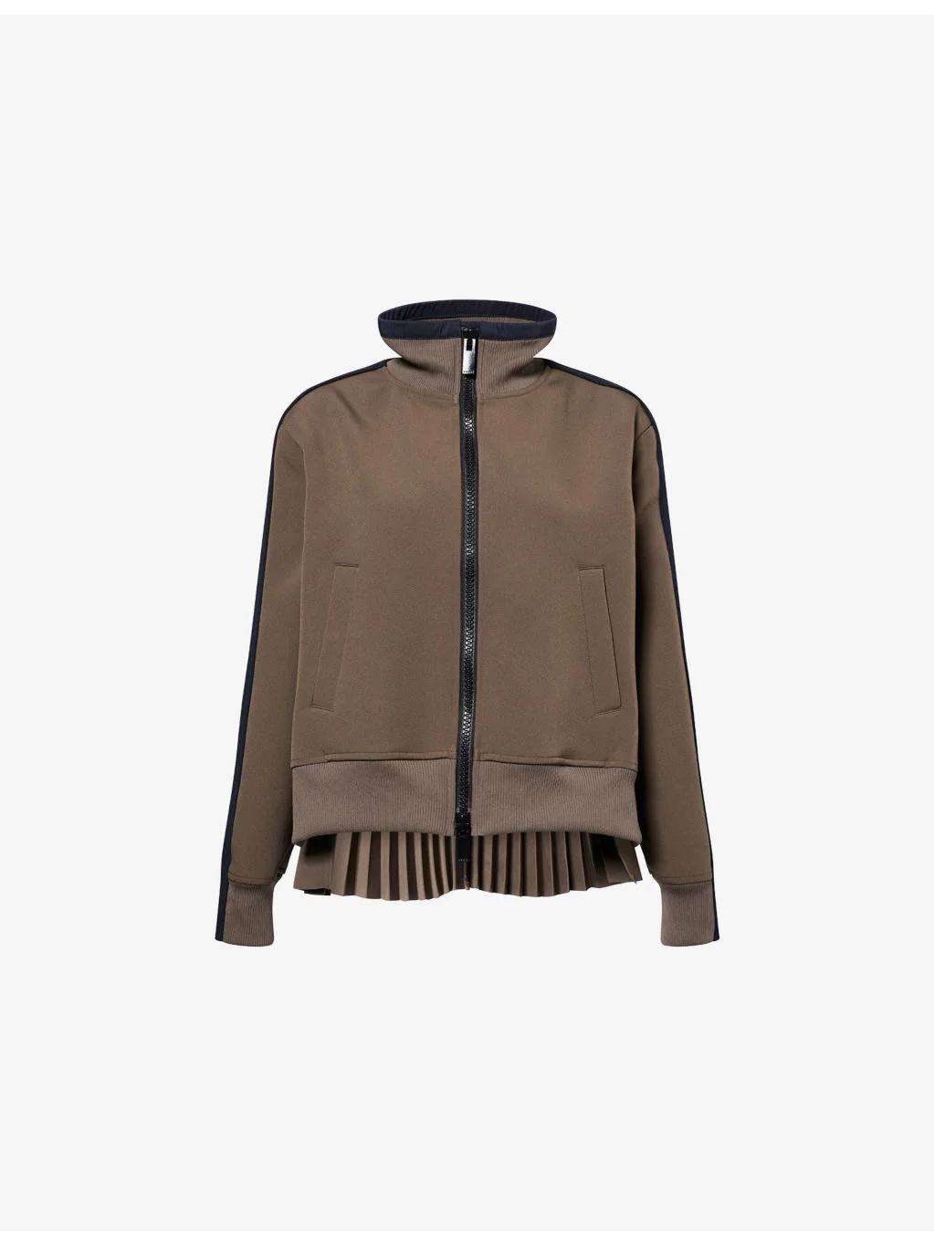 PRODUCT DETAILS - Sacai woven jacket - 100% polyester; contrast 100% polyester; filling 100% polyester; trims 60% cotton, 40% nylon - Exposed zip fastening at front - Relaxed fit, high-neck, contrast ribbed panel at long sleeves, two buttoned pockets at front, pleated at back, split at sides, ribbed trims - Dry clean - Made in Japan - True to size - Size small: length 21in / 54cm - Model is 5ft 10in/1.78m and wears a size small - Midweight, slight stretch Ref: R04568025