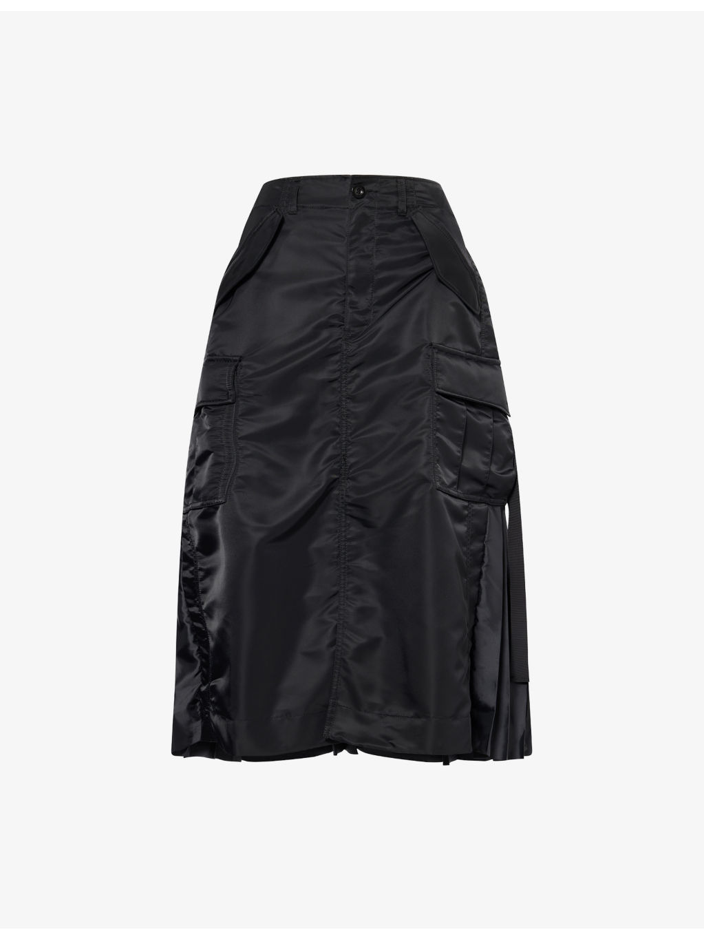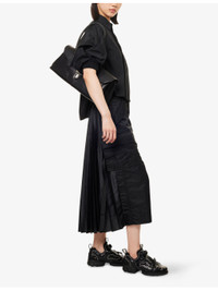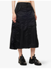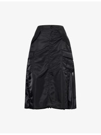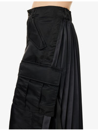 PRODUCT DETAILS - Sacai woven midi skirt - 100% nylon; contrast 100% polyester; filling 100% polyester; lining 100% cupro - Exposed button and concealed zip-fly fastening at front - Regular fit, high-waist, elasticated waistband, belt loops, four buttoned pockets at front, slit at front, pleated at back, partially lined - Dry clean - Made in Japan - True to size - Size small: length 32in / 82cm - Model is 5ft 10in/1.78m and wears a size small - Lightweight, slight stretch Ref: R04488257