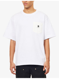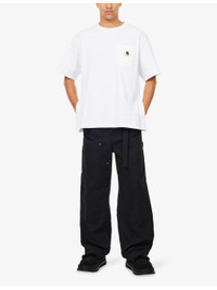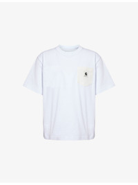 PRODUCT DETAILS - Sacai x Carhartt WIP cotton-jersey T-shirt - 100% cotton - Relaxed fit, crew neck, ribbed trim at neck, short sleeves, patch pocket at chest. logo applique at chest pocket - Machine wash cold - Model is 6ft 2in/1.88m and wears a size medium - Lightweight, slight stretch Ref: R04523480