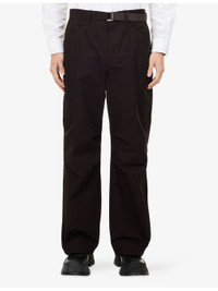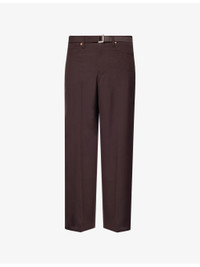 PRODUCT DETAILS - Sacai wool and cupro suiting trousers - 70% wool, 30% cupro - Button and zip-fly fastening - Straight leg, belted, side pockets, welt pocket at front and back, pressed front creases - Dry clean - Size small: rise 12.5in / 31.7cm, inside leg 29.51in / 74.93cm, leg opening 20in / 50.8cm - Model is 6ft 2in/1.88m and wears a size small - Midweight, non-stretch Ref: R04489545