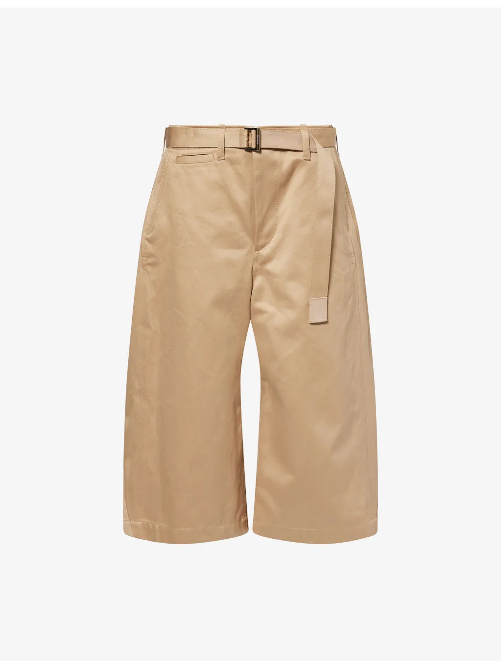 PRODUCT DETAILS - Sacai cotton chino shorts - 100% cotton - Button and zip-fly fastening - Regular fit, wide curved leg, midi length, mid-rise, belt loops, detachable adjustable belt, slip pockets at sides, buttoned welt pockets at back - Dry clean - Made in Japan - True to size - Size small: rise 12in / 30.5cm, inside leg 18in / 46cm, leg opening 25in / 63.5cm - Model is 5ft 10in/1.78m and wears a size small - Midweight, non-stretch Ref: R04567706