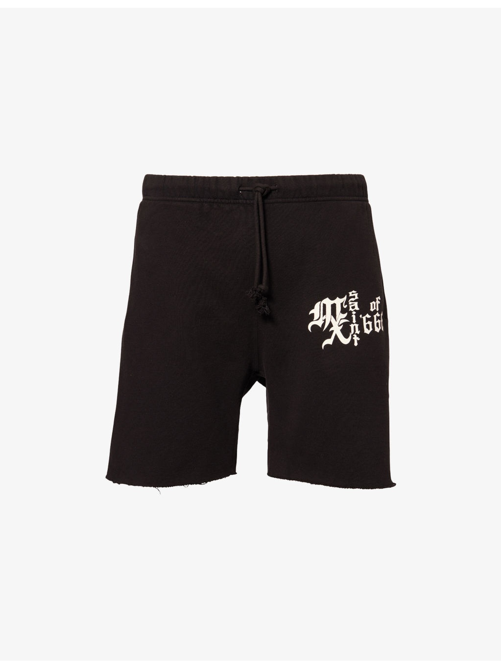 PRODUCT DETAILS - SAINT Mxxxxxx cotton sweat shorts - 100% cotton - Pulls on - Relaxed fit, drawstring waist, side pockets, graphic logo print at front, raw hems - Machine wash mild - Model is 6ft 2in/1.88m and wears a size medium - Midweight, slight stretch Ref: R04369542
