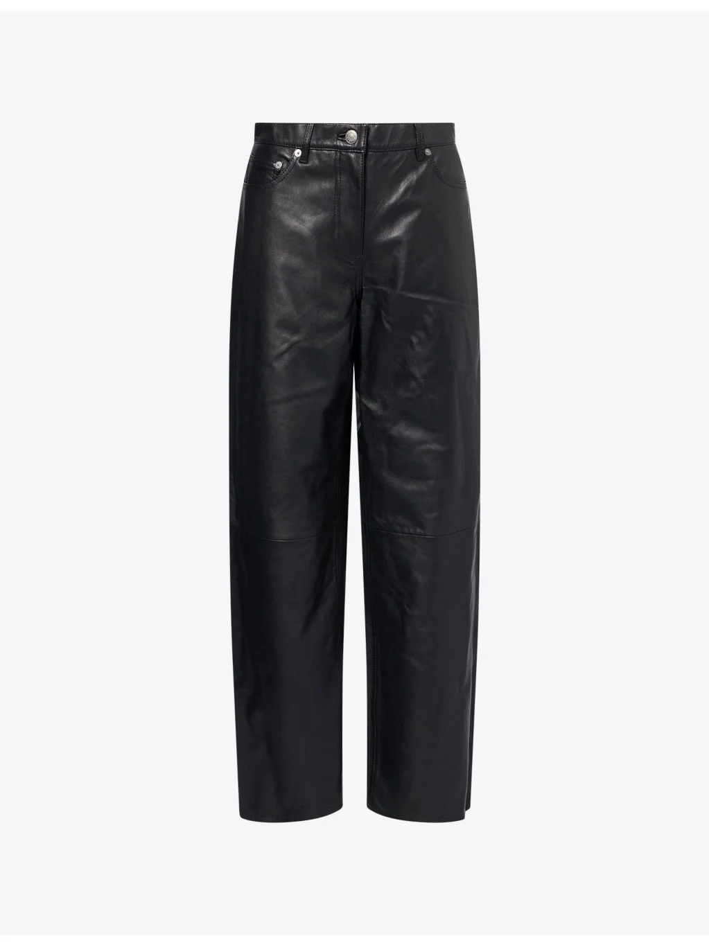 PRODUCT DETAILS - SamsOe & SamsOe leather trousers - 100% leather - Button and zip-fly fastening - Regular fit, mid-rise, straight leg, structured waistband with belt loops, five pockets, panelled construction - Specialist leather clean - True to size - Model is 5ft 10in/1.78m and wears a size small - Midweight, non-stretch Ref: R04551676