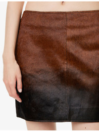 PRODUCT DETAILS - SamsOe & SamsOe leather mini skirt - 100% cow leather; contrast 100% lamb leather; lining 100% polyester - Exposed zip fastening at side - Slim fit, high-waist, all-over pony hair texture, gradient colour, fully lined - Specialist leather clean - Made in India - True to size - Size small: length 15in / 39cm - Model is 5ft 10in/1.78m and wears a size small - Midweight, non-stretch Ref: R04487314