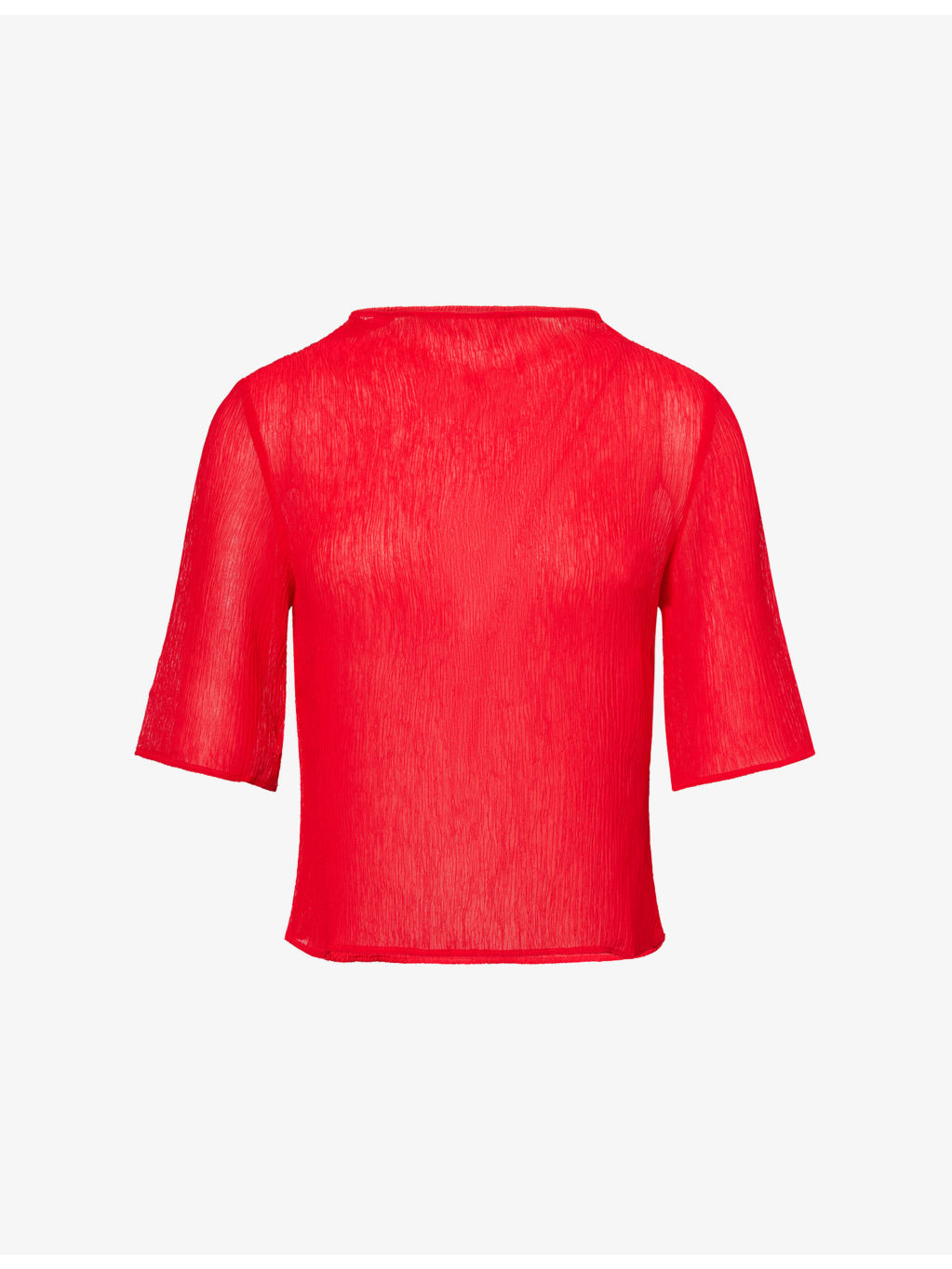 PRODUCT DETAILS - SamsOe & SamsOe woven top - 100% viscose - Concealed button fastenings at back - Regular fit, high-neck, short sleeves, all-over wrinkled texture - Dry clean - True to size - Model is 5ft 10in/1.78m and wears a size small - Lightweight, stretchy Ref: R04487307