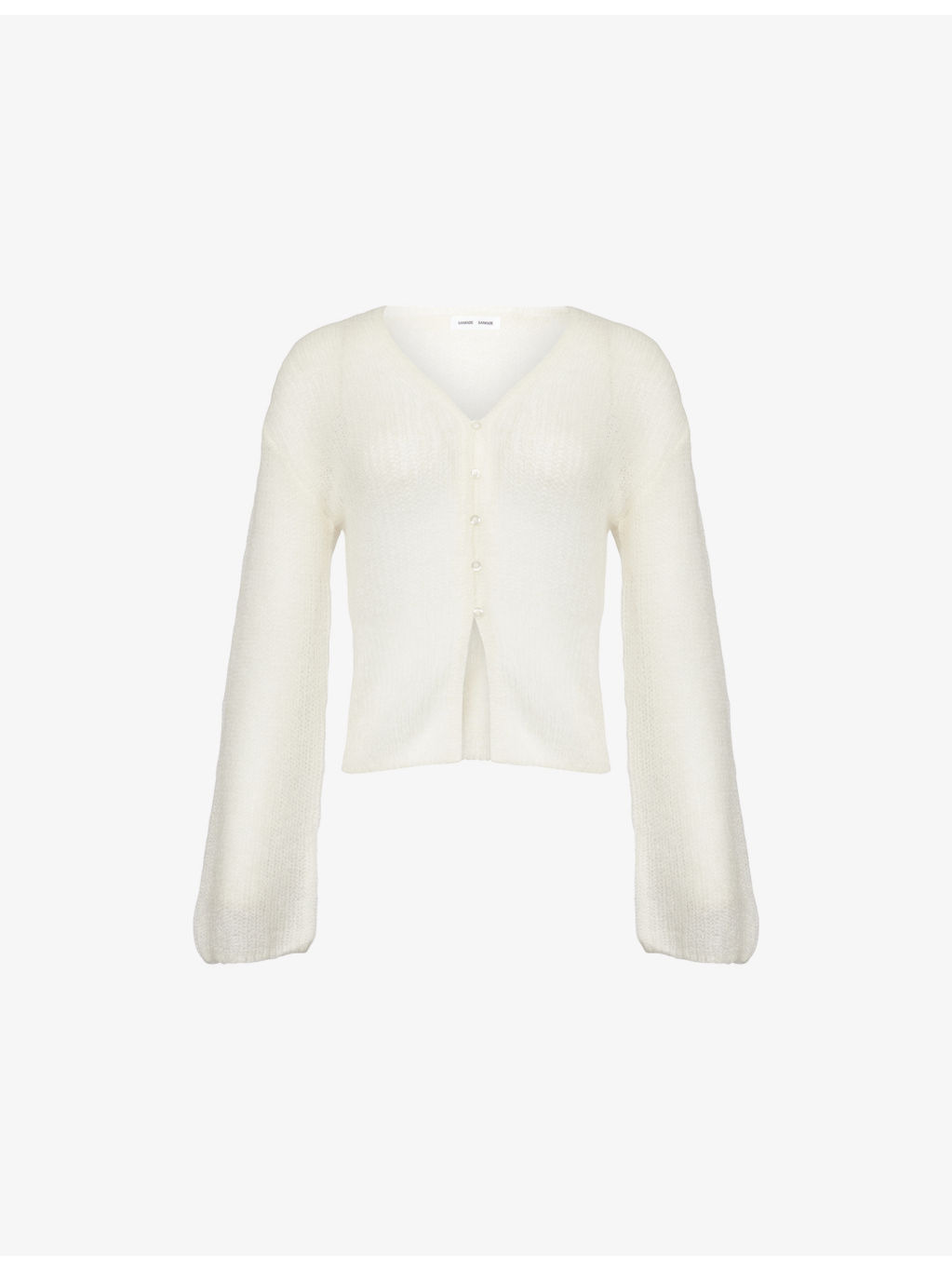 PRODUCT DETAILS - SamsOe & SamsOe wool-blend cardigan - 68% mohair wool, 24% polyamide, 8% wool - Exposed button fastening at front - Relaxed fit, V-neck, long sleeves, all-over knitted, brushed - Hand wash cold - True to size - Size small: length 21in / 54cm - Model is 5ft 10in/1.78m and wears a size small - Midweight, stretchy Ref: R04487315
