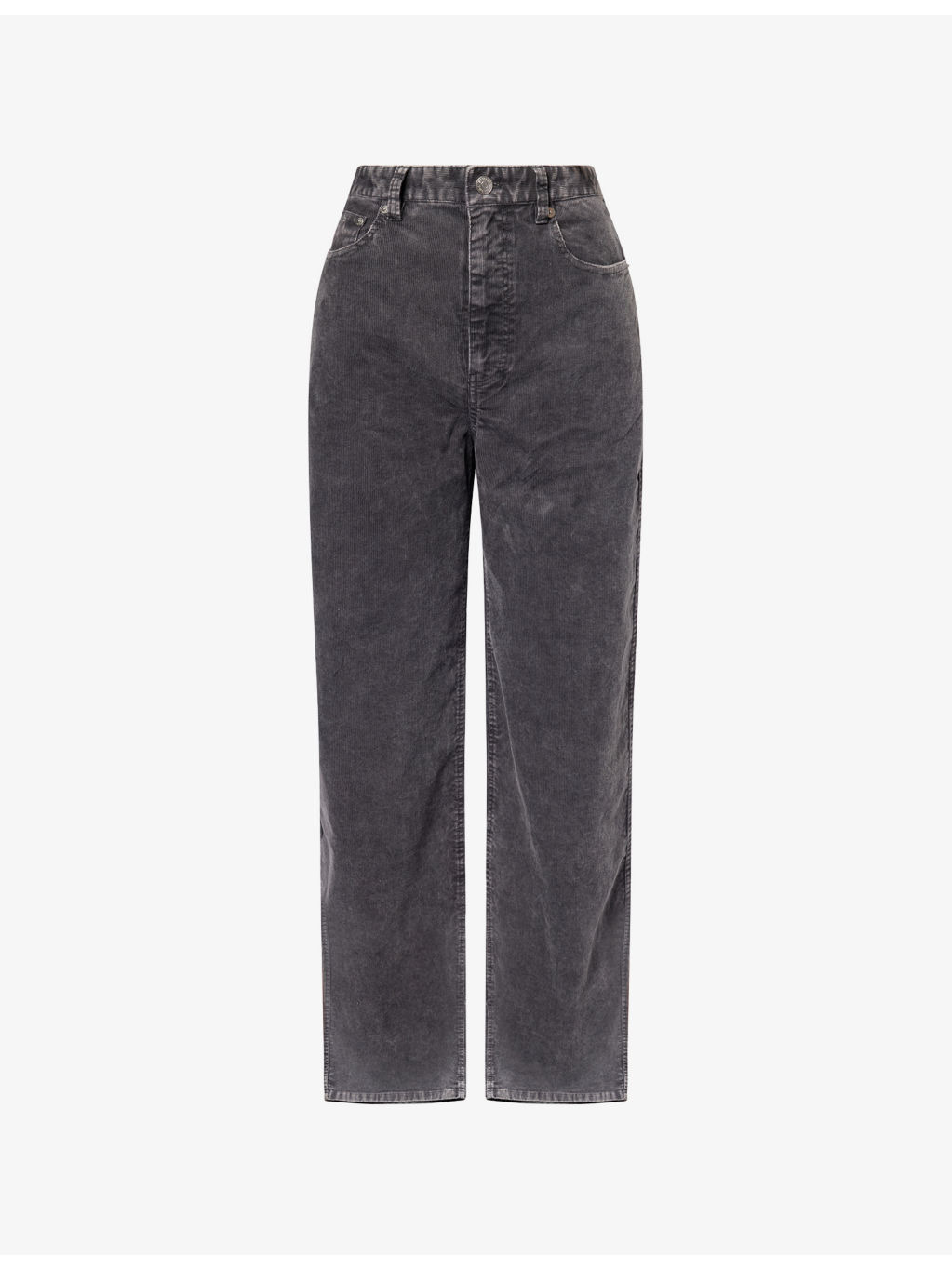 PRODUCT DETAILS - SamsOe & SamsOe stretch-cotton trousers - 98% cotton, 2% elastane; pocketlining 100% cotton - Exposed button and concealed zip-fly fastening at front - Relaxed fit, high-rise, wide leg, belt loops, five pockets, brand patch at back, all-over corduroy texture - Machine wash at 30°C - True to size - Size small: rise 13in / 33cm, inside leg 29in / 75cm, leg opening 20in / 51cm - Model is 5ft 10in/1.78m and wears a size small - Midweight, stretchy Ref: R04487311
