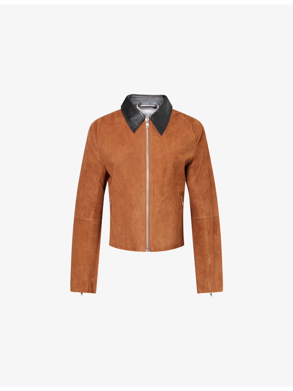 PRODUCT DETAILS - SamsOe SamsOe leather jacket - 100% leather - Zip fastening at front - Boxy fit, classic collar, long sleeves, zip pockets at front - Specialist leather clean - True to size - Size small: length 22in / 55.8cm - Model is 5ft 10in/1.78m and wears a size small - Midweight, non-stretch Ref: R04487329