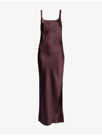 PRODUCT DETAILS - SamsOe SamsOe woven midi dress - 100% polyester - Slim fit, square-neck, shoulder straps, all-over satin texture, split at side - Machine wash at 30°C - True to size - Size small: length 57in / 145cm - Model is 5ft 10in/1.78m and wears a size small - Lightweight, stretchy Ref: R04551672