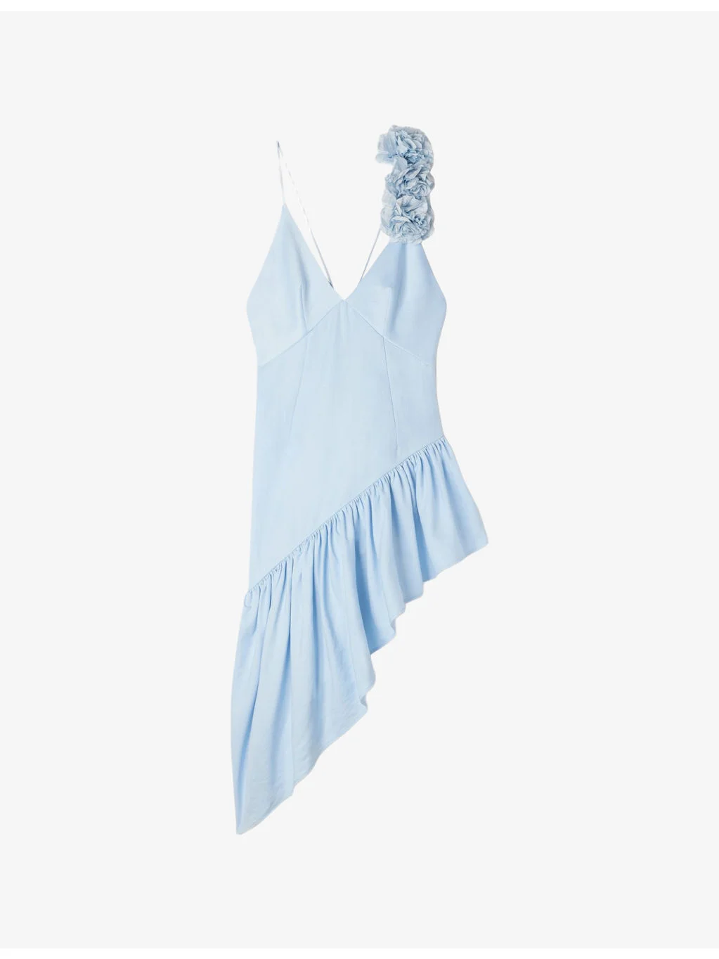 PRODUCT DETAILS - Sandro woven dress - 81% lyocell 19% linen - Concealed zip fastenig at back - Regular fit, V-neck, narrow straps, ruffle detail, asymmetrical hem - Dry clean - True to size - Model is 5ft 9in/1.75m and wears a size UK 8 - Lightweight, non-stretch Ref: R04598589