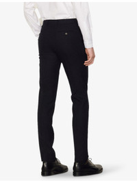 PRODUCT DETAILS - Sandro wool trousers - 100% wool; lining 100% polyester - Concealed hook-and-eye, button-fly fastening at front - Slim-fit, tapered, mid-rise, belt loops, all-over woven pattern, two slip pockets at front, pressed centre creases at front and back, darts at front and back yoke, two buttoned jet pockets at back, partially lined - Dry clean - Size 40: Rise 12"", inside leg 33"", leg opening 14"" - Model is 6ft/1.83m and wears a size UK 40 Ref: R03851778