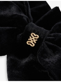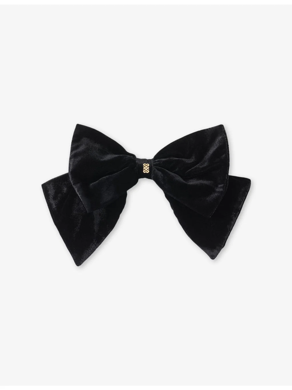 PRODUCT DETAILS - Sandro velvet barette - 75% viscose, 25% polyamide - Clip-on fastening - Bow silhouette, logo plaque, gold-tone hardware - Please use a soft, dry polishing cloth Ref: R04501253