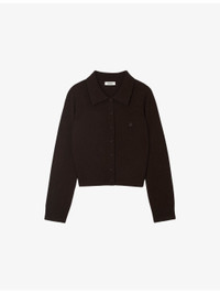 PRODUCT DETAILS - Sandro wool and cashmere cardigan - 90% wool, 10% cashmere - Button fastening - Regular fit, collar, long sleeves, contrast placket, branding to chest, ribbed trims, knitted - Hand wash - True to size - Model is 5ft 9in/1.75m and wears a size small - Lightweight, slight stretch Ref: R04501183
