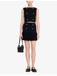 PRODUCT DETAILS - Sandro stretch-knit top - 53% viscose, 45% polyamide, 2% elastane - Button fastening - Regular fit, round neck, sleeveless, button embellishment, gold-tone hardware - Dry clean - True to size - Model is 5ft 10in/1.78m and wears a size UK 8 - Midweight, slight-stretch Ref: R04490608