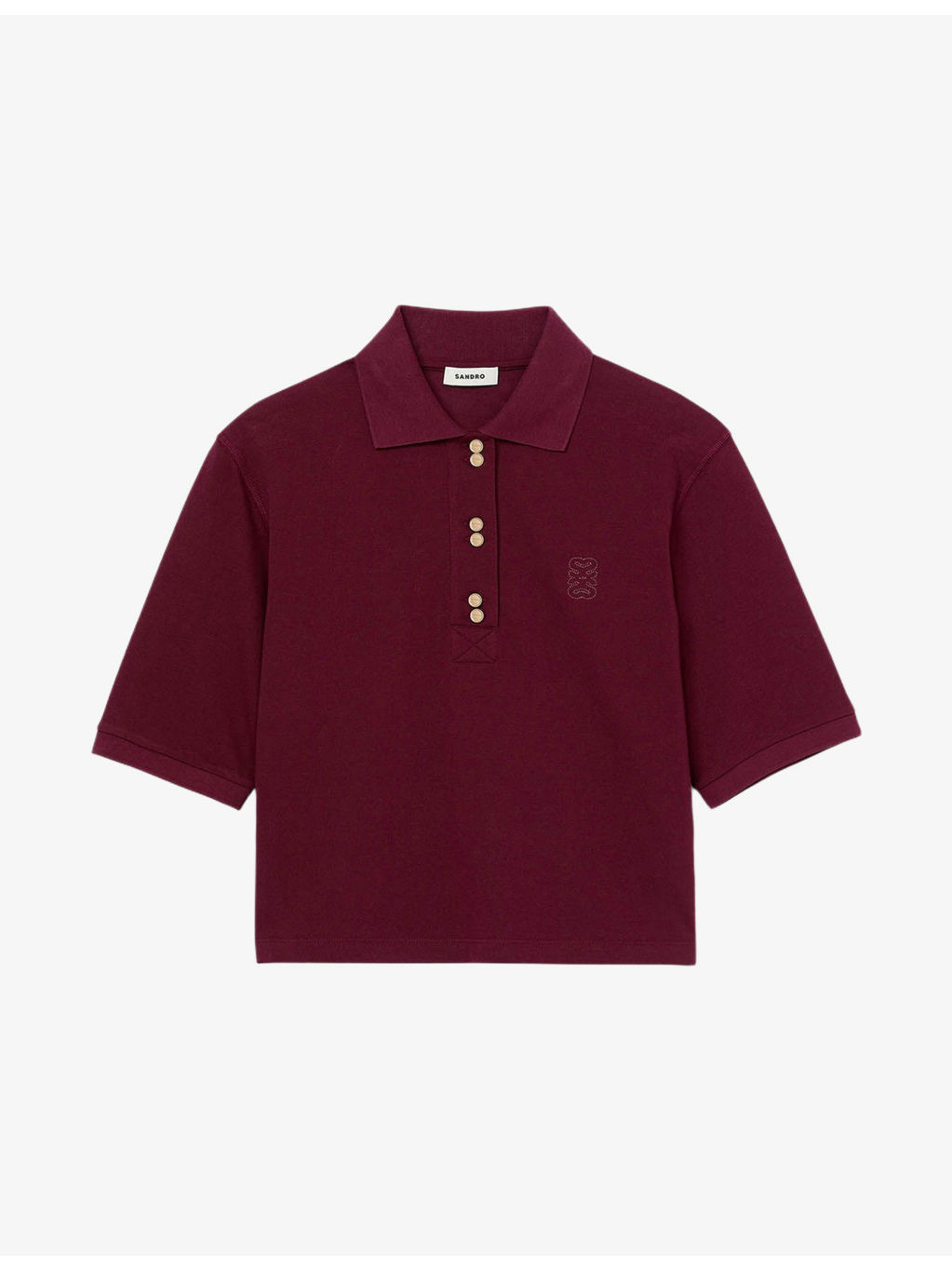 PRODUCT DETAILS - Sandro cotton polo shirt - 100% cotton - Relaxed fit, polo shirt, button-up polo neck, short sleeves, embroidery on the chest, ribbed trims - Machine wash mild - True to size - Model is 5ft 10in/1.78m and wears a size UK 8 - Lightweight, slight stretch Ref: R04412288