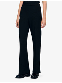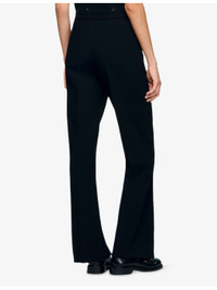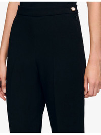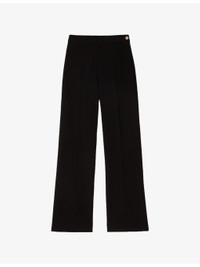 PRODUCT DETAILS - Sandro stretch-woven trousers - 64% polyester, 32% viscose, 4% elastane - Exposed button and concealed zip fastening at side - Regular fit, high rise, gold-toned button at side, straight, wide leg, pressed centre creases, - Dry clean only - True to size - Model is 5ft 9in/1.75m and wears a size UK 8 - Lightweight, slight stretch Ref: R04490683