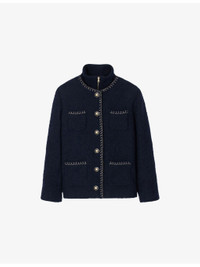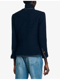 PRODUCT DETAILS - Sandro tweed jacket - 35% cotton, 23% wool,19% polyester, 10% acrylic, 7% alpaca, 6% polyamide - Exposed button fastening at front - Regular fit, round neck, long sleeves, contrast trims, four pockets at the side, gold-tone hardware - Dry clean - True to size - Model is 5ft 9in/1.75m and wears a size UK 8 - Midweight, non-stretch Ref: R04501217