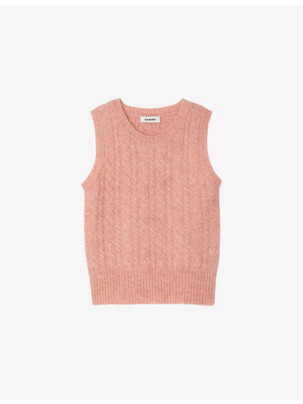 PRODUCT DETAILS - Sandro wool-blend vest - 68% wool, 29% polyamide, 3% elastane - Regular fit, round-neck, sleeveless, cable-knit texture, ribbed trims - Hand wash - True to size - Model is 5ft 9in/1.75m and wears a size UK 8 - Midweight, slight stretch Ref: R04490682