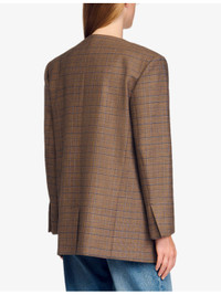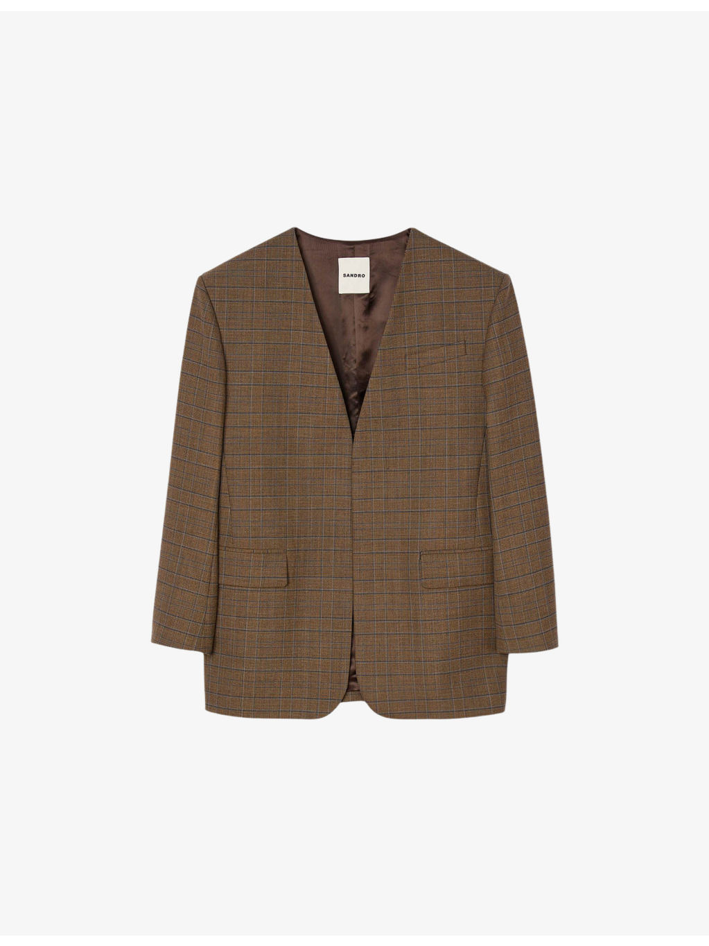 PRODUCT DETAILS - Sandro woven jacket - 52% polyester, 26% wool, 18% viscose, 4% elastane - Oversized fit, V-neck, open front, shoulder pads, long sleeves, chest pocket, side pockets, all-over checked pattern - Dry clean - True to size - Model is 5ft 10in/1.78m and wears a size UK 8 - Midweight, slight stretch Ref: R04490686
