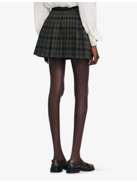 PRODUCT DETAILS - Sandro woven mini skirt - 66% polyester, 32% viscose, 2% elastane - Zip fastening at back - Structured waistband, pleated detailing, buckle feature at front, all-over checked pattern, mini-length - Hand wash - True to size - Lightweight, non-stretch Ref: R04501151