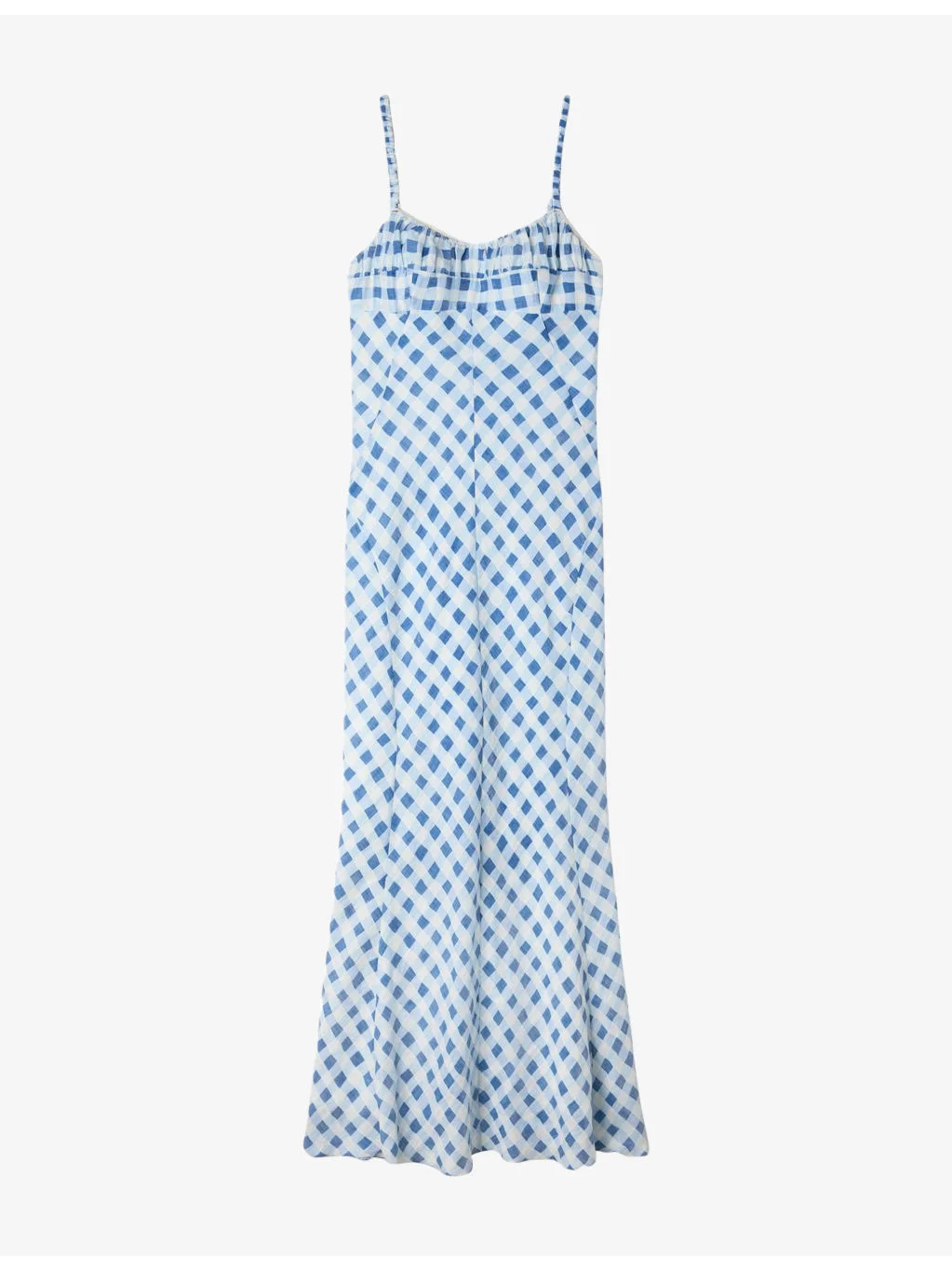 PRODUCT DETAILS - Sandro linen-blend maxi dress - 86% linen, 14% polyester - Concealed zip fastening at back - Regular fit, scoop neck, adjustable shoulder straps, all-over gingham checked pattern, picot trims, ruched at neck, tie-up back, maxi length - Machine wash cold - True to size - Lightweight, non-stretch Ref: R04598507