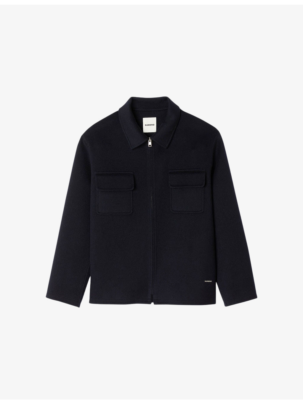 PRODUCT DETAILS - Sandro wool-blend jacket - 80% wool, 20% polyamide; lining 100% polyester - Exposed zip fastening - Collar, long sleeves, two patch pockets at front, silver-toned hardware - Dry clean - Model is 6ft 1in/1.85m and wears a size medium - Heavyweight, non-stretch Ref: R04255927