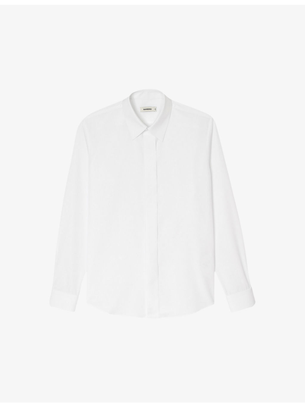 PRODUCT DETAILS - Sandro cotton shirt - 100% cotton - Concealed button fastenings at front - Regular fit, pointed collar, long sleeves, buttoned cuffs, covered button placket - Specialist dry clean - Lightweight, non-stretch Ref: R04256204
