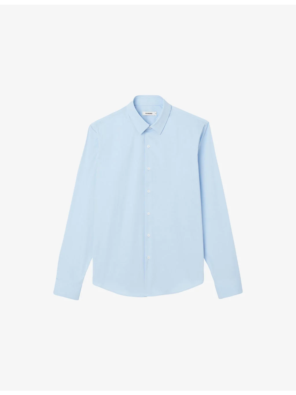 PRODUCT DETAILS - Sandro cotton-blend shirt - 78% cotton, 18% polyamide, 4% elastane - Button fastening - Straight-point collar - Regular fit, collar, long sleeves, buttoned cuffs, straight yoke at back, curved hem - Machine wash cold - Model is 6ft 2in/1.88m and wears a size medium - Lightweight, slight stretch Ref: R04416234