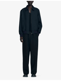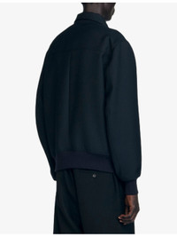 PRODUCT DETAILS - Sandro woven jacket - 56% polyester, 44% virgin wool; lining 100% viscose - Exposed zip fastening at front - Regular fit, collar, long sleeves, two slanted welt pockets at front, ribbed cuffs and hem - Dry clean only - Model is 6ft 2in/1.88m and wears a size medium - Midweight, non-stretch Ref: R04490349