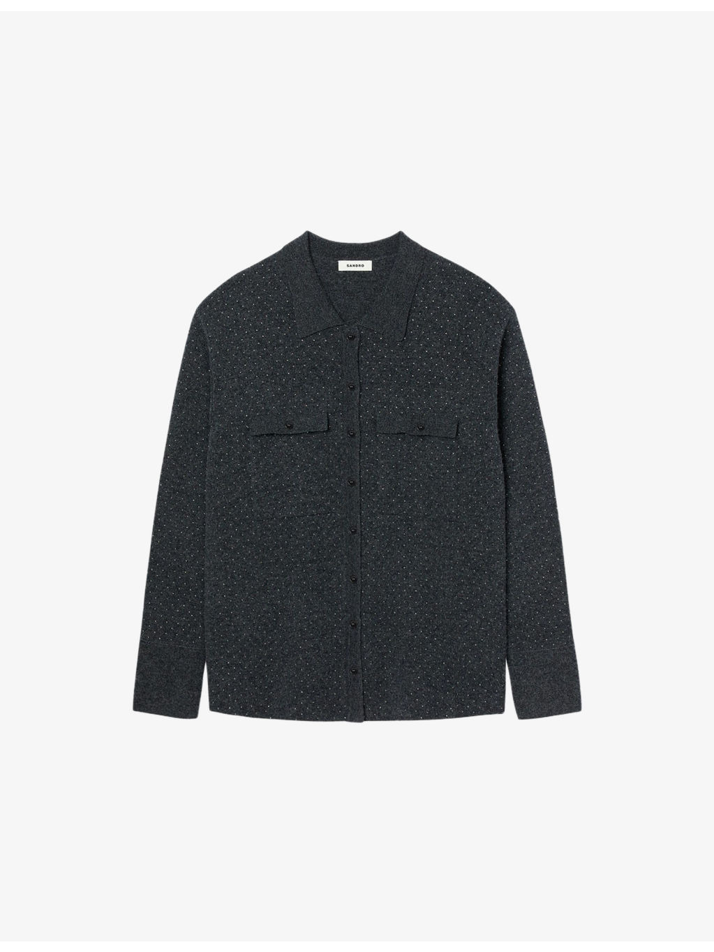 PRODUCT DETAILS - Sandro wool and cashmere-blend cardigan - 47% wool, 38% viscose, 10% polyamide, 5% cashmere - Exposed button fastening at front - Regular fit, collared, long sleeves, two pockets at the side, all-over rhinestone embellishment - Hand wash - True to size - Model is 5ft 9in/1.75m and wears a size UK 8 - Midweight, slight stretch Ref: R04501224