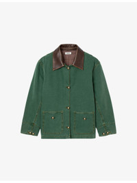 Contrast-Collar Button-Down Cotton Jacket