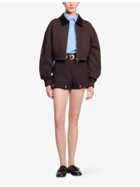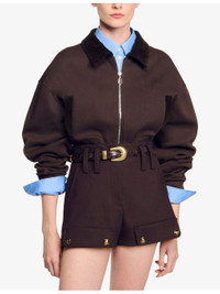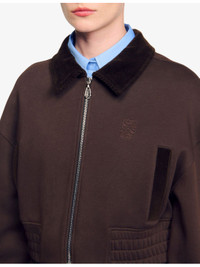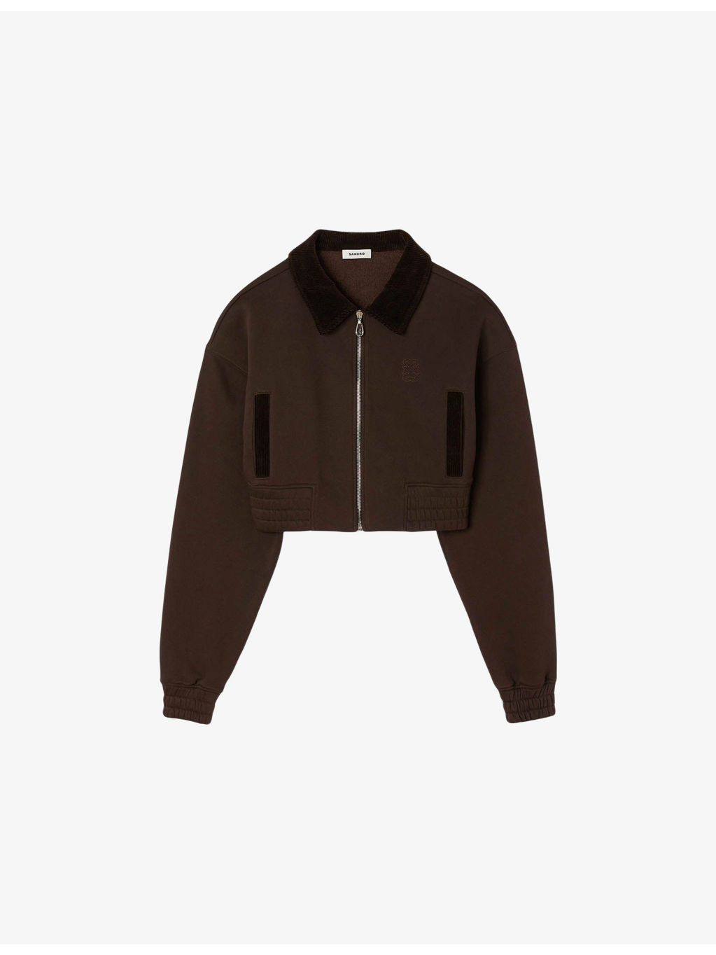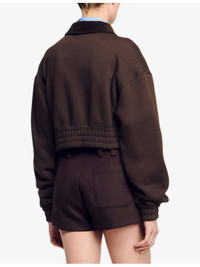 PRODUCT DETAILS - Sandro cotton-blend sweatshirt - 65% cotton, 35% polyester - Exposed zip fastening at front - Relaxed fit, contrast collar, long sleeves, two pockets at the side, logo embroidery at the chest, ribbed hem, cropped, dual fabric - Machine wash at 30°C - True to size - Model is 5ft 10in/1.78m and wears a size UK 8 - Midweight, non-stretch Ref: R04490524