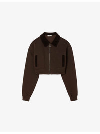 Contrast-Collar Zip-Up Cropped Cotton-Blend Sweatshirt